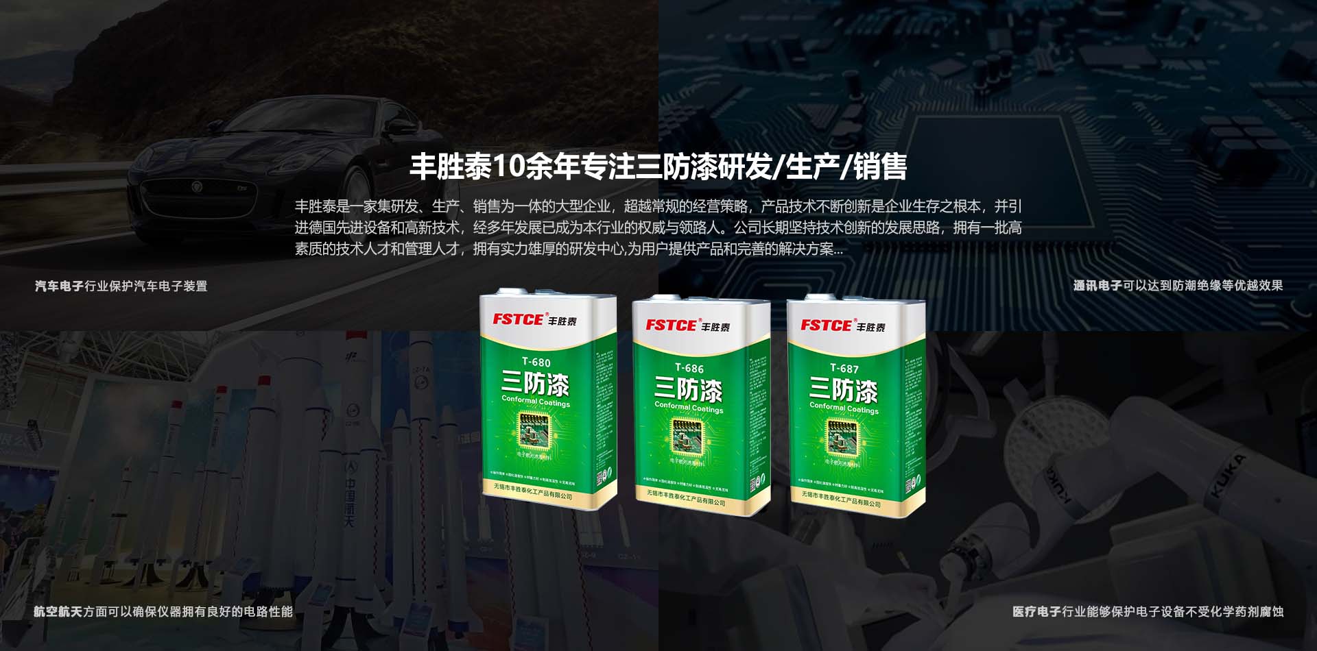 無錫豐勝泰化工有限公司坐落于風(fēng)景秀麗,交通便捷的長三角地區(qū)無錫。公司致力于三防漆、膠粘劑、三防膠產(chǎn)品的研發(fā)、生產(chǎn)、銷售。年生產(chǎn)上萬噸三防漆、三防膠和膠粘劑。自成立以來一直為客戶提供高附價值的三防漆、膠粘劑解決方案。并在多個大中城市設(shè)有辦事處。